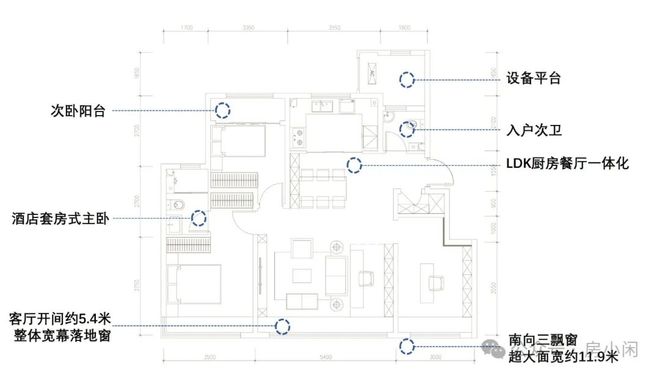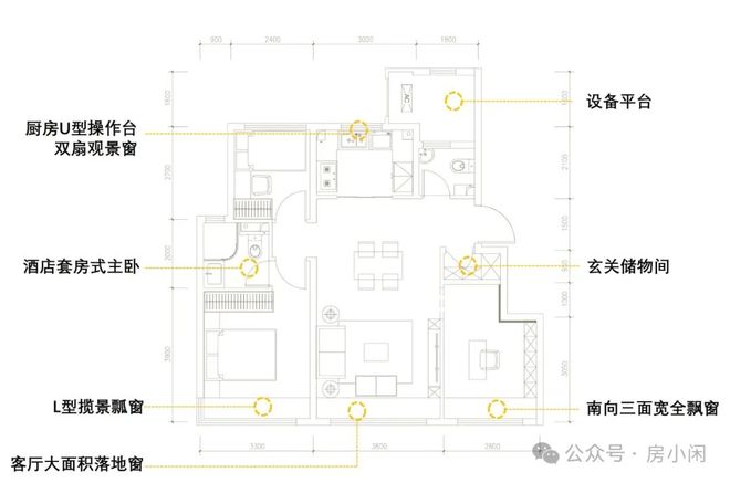 更重要的是,通过南向三飘窗和设备平台的设计,户型内预留个性化调整空间,带来更高的出房率和更好的功能灵活性。